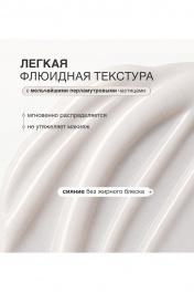 Праймер под макияж сияющий Уникальная комбинация мелкодисперсных светоотражающих перламутров придает коже объемное диффузное сияние с ярко выраженным влажным финишем. Результат - модный бьюти эффект "стеклянной кожи". Праймер мягко рассеивает свет, визуально сглаживая мелкие неровности и поры. Мельчайшие светоотражающие частицы создают невесомый blur-эффект, мгновенно стирают следы усталости, дарят лицу вид фарфоровой гладкости. Увлажняющий гиалуроновый комплекс Hymagic™-4D интенсивно ухаживает за кожей, насыщая ее влагой. Витамин Е защищает от агрессивных факторов окружающей среды. Используйте праймер как самостоятельное средство для максимально сияющей кожи или как основу под макияж для эффекта «inner glow». Также основу можно смешать с тональным средством для более деликатного сияния. Преимущества - объемное диффузное сияние - невесомый blur-эффект - интенсивно ухаживает за кожей - модный бьюти эффект "стеклянной кожи"