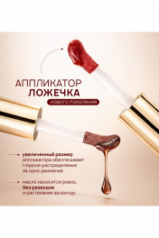 Масло-блеск придает губам сочный полупрозрачный оттенок, ультраглянцевое зеркальное покрытие, соблазнительный объем, наполненность и яркость. Насыщенная формула с натуральными маслами, эмолентами и витамином Е обеспечивает полноценный комплексный уход за губами в любое время года. Заметно преображает и улучшает состояние кожи губ, дарит длительное ощущение комфорта в течение дня. Современный аппликатор-ложечка увеличенного размера позволяет легко и быстро нанести продукт на губы одним движением. Гарантирует безупречный результат без растекания. Обладает повышенной стойкостью по сравнению с классической формулой масла для губ, надолго сохраняет цвет и влажный глянцевый блеск. Палитра из шести ультрамодных оттенков для универсального использования. Вариативность гаммы позволяет создать идеальный образ для любого случая и настроения. Преимущества - сочный полупрозрачный оттенок - ультраглянцевое зеркальное покрытие - питательный уход на весь день - аппликатор - ложечка нового поколения - обладает повышенной стойкостью