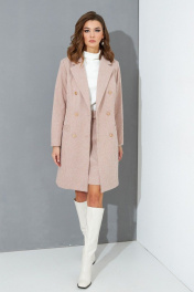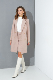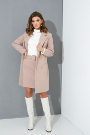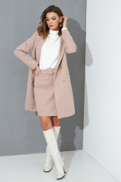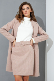 Стильный комплект двойка из костюмной ткани: жакет + юбка. Удлиненный жакет прямого силуэта, на подкладке, с плечевыми накладками, с двубортной застежкой на петли и пуговицы. Воротник пиджачного типа. Перед с рельефами и карманами с листочкой. Спинка с рельефными швами. Рукав втачной двухшовный длинный. Короткая юбка прямого силуэта, на притачном поясе со шлевками для ремня, без подкладки. Переднее и заднее полотнища с вытачками. В боковом шве потайная застежка на молнию. В комплект входит съемный ремень из основной ткани. Длина жакета: 92 см Длина рукава: 61 см Длина юбки: 51 см