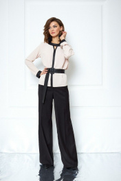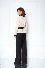 Эффектная блузка прямого силуэта. Горловина округлой формы, обработана бейкой из трикотажной кожи. По переду блузки декоративная планка с V-образным вырезом и нагрудными вытачками. Рукав втачной длинный, по низу на манжете из трикотажной кожи. В комплект входит съемный ремень из экокожи. Длина блузки: 58 см Длина рукава: 62 см