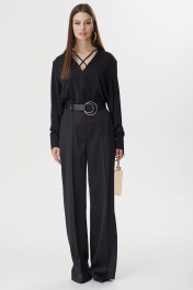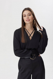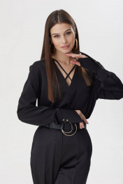 Нарядная блузка прямого силуэта из струящейся ткани. Горловина V-образная с декоративным элементом. Рукав втачной, по низу манжета с застежкой на петлю и пуговицу. Обращаем ваше внимание, что фурнитура может незначительно отличаться от фото. Длина изделия: (44-48р - 63см)(50-54р – 65см)(56-60р – 67см) Длина рукава: 61 см