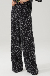 Стильный комплект состоящий из блузки и брюк. Блузка прямого силуэта из штапеля с фигурным низом. Горловина округлая. На спинке вырез с декоративными планками. Рукав цельнокроеный, по низу манжета . По переду дизайнерская печать. В комплект входит съемный ремень с полукольцами. Обращаем ваше внимание, что фурнитура может незначительно отличаться от фото. Брюки свободного силуэта из штапеля. По верху брюк притачной пояс на резинке. На передних половинках обработаны наклонные карманы. На задних половинках вытачки. Длина блузки: в 44-48р – 71см.; в 50-54р – 73см.; в 56-60р - 76см. Длина рукава от горловины: в 44-48р- 37см.; в 50-54р – 38см.; в 56-60р – 39см. Длина брюк: в 44-48р -111см.; в 50-54р -112см.; в 56-60р -113см.