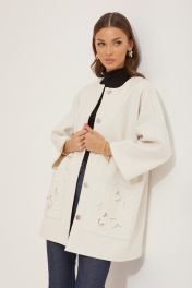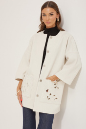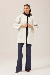 Кардиган прямого силуэта из трикотажного полотна. Горловина округлая. По центру застежка на кнопки. Рукав со спущенной линией плеча, длиной 7/8 . По переду накладные карманы с дизайнерской вышивкой. Обращаем ваше внимание, что фурнитура может незначительно отличаться от фото. Длина кардигана (44-48р -78см)(50-54р – 80см)(56-60р - 82см) Длина рукава от горловины 64см