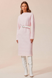 Платье полуприлегающего силуэта, чуть зауженное книзу из комфортного трикотажного полотна ниже колена. Горловина с цельнокроеной стойкой. Рукав со спущенной линией плеча длинный. В комплект входит нижняя юбка на подкладке. В комплект не входит ремень! Длина платья 114 см. Длина рукава 72 см от горловины.