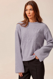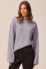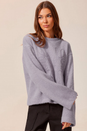 Стильный повседневный джемпер прямого силуэта из мягкого трикотажного полотна с ворсом. По переду расположена дизайнерская вышивка. Горловина округлая. Спущенная пройма, свободный, удлиненный рукав. Длина изделия (в 44-48 р. – 58 см) (в 50-54 р. – 61 см) (в 56-60 р. – 64 см). Длина рукава 74 см от горловины .
