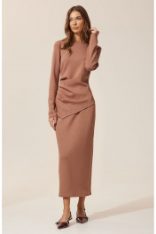 Трикотажный джемпер прилегающего силуэта, с ассиметричным низом и декоративными складками на уровне талии. Длина изделия 62 см . Длина рукава 62 см .