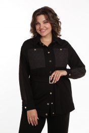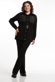 Костюм из текстиля: прямая рубашка и брюки с кокетками и карманами SMilaLine М-2411 черный