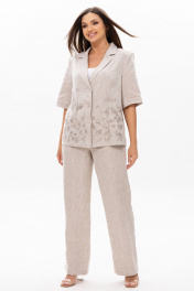 Шикарный льняной жакет Ma Сhérie свободного силуэта на все случаи жизни. Воротник пиджачного типа, застежка центральная на три петли и пуговицы. Снизу полочки декоративная дизайнерская вышивка. Спинка со средним швом, который заканчивается шлицей. Рукав одношовный втачной, длиной по локоть. Длина изделия 64 см, длина рукава 34 см. Наш жакет смело можно надеть в офис, семейное торжество или деловую встречу. Будет идеально смотреться с нашими льняными брюками 2047 (на фото), также обе модели можно приобрести комплектом 3046.