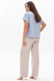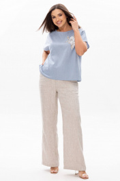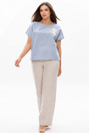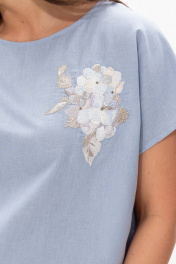 Женская льняная блуза Ma Сhérie свободного силуэта. Вырез округлый. На полочке расположена дизайнерская вышивка. Рукав короткий со спущеной линией плеча. Спинка с центральным швом, в боковых швах разрезы. Длина изделия 59 см, длина рукава от горловины 30 см. Рубашка для торжественных мероприятий и повседневных образов, будет идеально смотреться с нашими брюками 2054 (на фото), также обе модели можно приобрести комплектом 3068.
