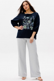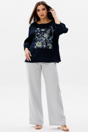 Блуза, брюки Ma Сherie 3146 темно-синий+светло-серый