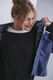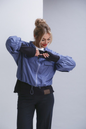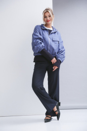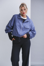 Куртка из ткани с водоотталкивающей пропиткой на мягкой вискозной подкладке. Застежка на тесьму-молнию. Ширина по низу и по краю воротника регулируется резинкой. По переду накладные карманы.