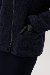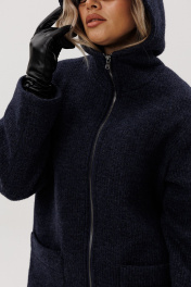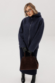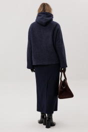 Куртка демисезонная из мягкой, полушерстяной, толстой, уютной ткане на трикотажной основе . Капюшон с высокой цельнокроенной стойкой, застегивающийся до верха. Куртка полностью на подкладке. Длина по спинке 65см..