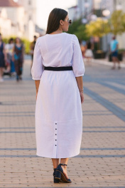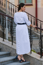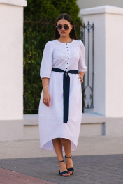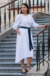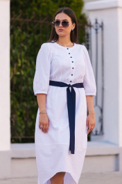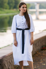 Платье женское по талии резинка,пояс в комплекте. Вырез горловины круглый,по груди пуговки,имеются боковые карманы,рукав втачной. Длина рукава 44 см, длина изделия по спинке 128см