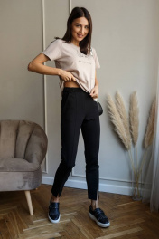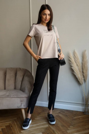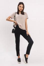 Женские повседневные укороченные брюки с карманами и трендовыми разрезами по низу. Брюки в классическом стиле из плотного трикотажного полотна. По талии притачной пояс с эластичной тесьмой. По поясу пять шлёвок для ремня. По спинке 2 вытачки. Брюки без застежки. На модели брюки ее 42 размера. Но обращаем Ваше внимание, что брюки отлично смотрятся полностью обтягивающими. Длина 98 см