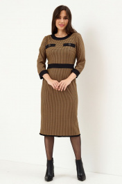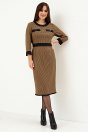 Платье из костюмной ткани с накладными карманами Магия моды 2147 сиена_гусиная_лапка - фото 1