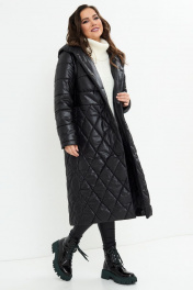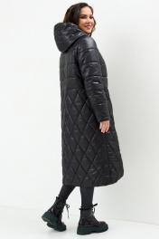 Стильное теплое зимнее пальто свободного кроя с центральной застежкой металлические кнопки. Выполнено из плотной стеганой плащевки,утеплено наполнителем HOOPON. Пальто дополнено функциональными карманами на молнии . Капюшон не съемный. Длина пальто от плечевого шва 110см. Длина рукава 63см.