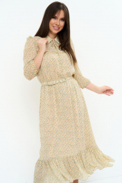 Стильный комплект из куртки и платья. Куртка-косуха выполнена из эко кожи, на подкладке. Платье на подкладке, полуприталенного силуэта с отрезной талией, с расширяющейся книзу юбкой. Низ юбки дополнен притачным валаном. Рукав втачной, присборенный к низу на эластичную тесьму. Платье дополнено съемным поясом в цвет платья. Длина платья от плечевого шва 134см. Длина рукава 46см. Длина куртки от плечевого шва 54см. Длина рукава 59см.