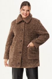 Теплая экомеховая шуба с застежкой на пуговицы Магия моды 2367 коричневый