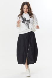 Худи и юбка в стиле карго из плащевой ткани и трикотажа Магия моды 2401 белый-черный