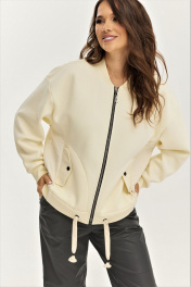 На каждый день стильный комплект бомбера и брюк из экокожи Магия моды 2490 ванильный_графит