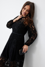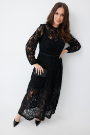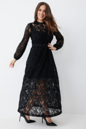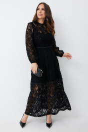 Шикарное кружевное платье полуприлегающего силуэта с расширением к низу. Выполнено из красивого нежного бархатного кружева. Рукав втачной, по низу присборен на эластичную тесьму. Горловина округлой формы, дополнена декоративной тесьмой. Платье отрезное по талии. Шов обработан декоративной тесьмой. Подкладка платья выполнена из тонкой, приятной к телу ткани. Длина платья от плечевого шва 140см. Длина рукава 62см.