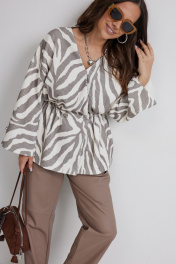 Стильный комплект из жакета-кимоно и брюк из мягкой и комфортной эко кожи. Двубортный жакет свободного кроя over с застежкой на красивые пришивные пуговицы. По талии скрытая кулиска с эластичной тесьмой, за счет которой можно поменять образ и приталить жакет. Жакет на подкладке, выполнен из фактурой ткани с animal принтом. Линия плеча слегка спущена. Рукав полной длины, широкий. Жакет дополнен удобными боковыми карманами. Брюки классического кроя , слегка заужены книзу. Притачной пояс дополнен эластичной тесьмой. Изнанка брюк выполнена из комфортной вискозы. Застежка гульфик на пришивную пуговицу и молнию. Брюки дополнены удобными карманами. Длина жакета от плечевого шва75см. Длина рукава 60см. Длина брюк по боковому шву 94см.