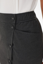 Повседневная юбка прямого силуэта слегка зауженная книзу. Спереди - фигурная планка с застежкой на пуговицы. Пояс прямой, сзади резинка.