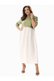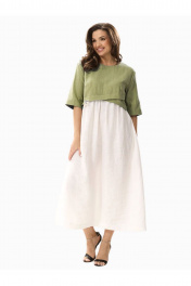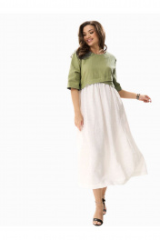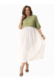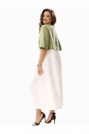 Платье с завышенной линией талии. По низу полочки декоративная горизонтальная складка. Рукав короткий прямой. Горловина округлой формы, сзади застегивается на пуговицу и воздушную петлю. Юбка присборенная, на подкладке, карманы в боковых швах.