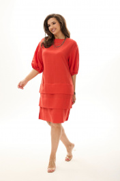 Красное летнее платье с крупными складками и разрезами MALI 424-013 красный