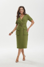 Платье полуприлегающего силуэта с пуговицами и объемными карманами MALI 424-027 хаки