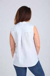 Летняя голубая блуза из льна с коротким рукавом MALI 621-065 полоска - фото 8