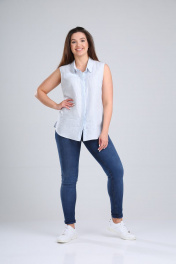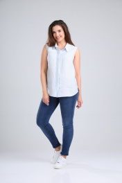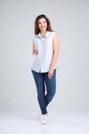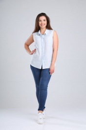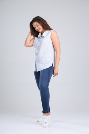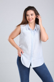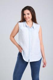 Летняя голубая блуза из льна с коротким рукавом MALI 621-065 полоска