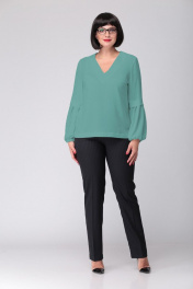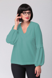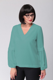 Бирюзовая и зеленая блуза с V-образным вырезом и сборкой MALI 621-078 бирюза