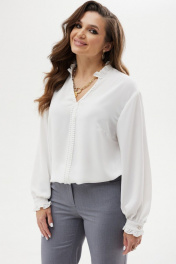 Белая блуза с фигурным низом и V-образной горловиной MALI 623-045 белый