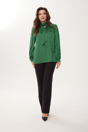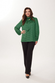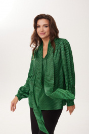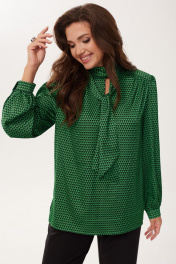 Нарядная блузка из атласной ткани с длинными рукавами MALI 623-073 изумруд