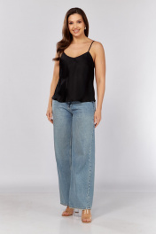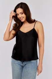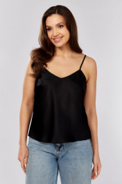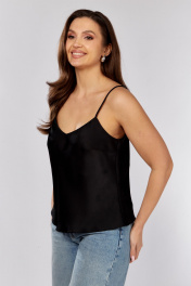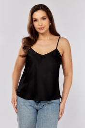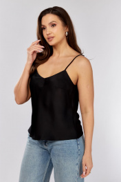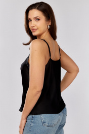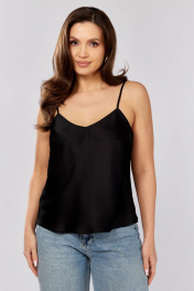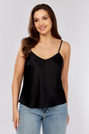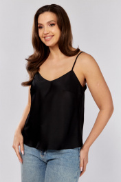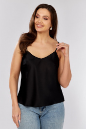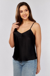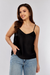 Топ из атласной ткани, покроенный по косой.По переду нагрудные вытачки. Вырез горловины фигурный . Бретели могут регулироваться.
