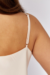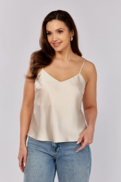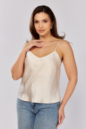 Топ из атласной ткани, покроенный по косой.По переду нагрудные вытачки. Вырез горловины фигурный . Бретели могут регулироваться.