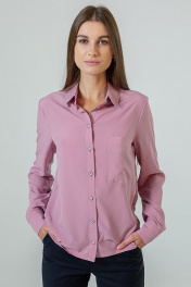 Блузка свободного силуэта с длинным рукавом. Мягкая и приятная на ощупь фактура ткани. Шикарный цвет "осенняя роза". Горловина — округлая с воротничком. Блузка застегивается спереди на пуговицы. На передней части расположен карман. Рукав с манжетой на двух пуговицах.