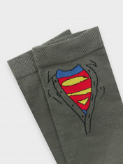 рис.3042 Мужской носок классический, высокий, с рисунком в виде логотипа Супермена.