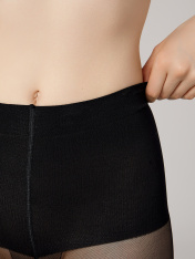 Полуматовые колготки 40 den — элегантное решение для создания безупречного образа. Модель с технологией Flat Flex обеспечивает идеальное облегание и комфорт в течение всего дня._x000D_ Ультраширокий утягивающий пояс мягко поддерживает линию талии и создает эффект плоского живота без дискомфорта. Хлопковая ластовица и усиленный мысок обеспечивают заботу о коже и долговечность. Нежные шортики и плоские швы остаются совершенно незаметными под одеждой, даря ощущение второй кожи.<br>_x000D_ <br>_x000D_ Колготки плотностью 40 den сохраняют естественную пластику движений, оставаясь практичным выбором для повседневной носки. Универсальный черный оттенок и полуматовая текстура делают их отличным выбором для офиса, свидания или особого мероприятия._x000D_