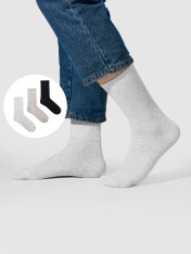Мультипак их трех пар классических высоких мужских носков с рисунком в виде поперечных полосок. Плотные, качественные и комфортные носки из высококачественного хлопка, который отлично впитывает влагу, пропускает воздух и подходит даже для самой чувствительной кожи. Удобная резинка и плоские швы на мыске носка создают особый комфорт. Прекрасно переносят множественные стирки, сохраняют форму и цвет, устойчивы к изнашиванию. Идеально облегают ногу. Носки мужские от Mark Formelle подходят для ежедневной носки, отлично сочетаются с вещами в гардеробе, дополнят любой образ: классический, спортивный, деловой. Такой набор мужских носков удачный и практичный подарок любимому мужчине, папе, парню или просто другу на любой праздник. Купить носки мужские недорого можно прямо у нас на сайте или в магазине. Красиво, стильно и удобно. Рекомендуем!