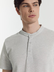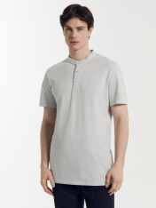 Стильная футболка поло с оригинальным воротником-стойкой и удобной застежкой на 3 пуговицы. Благодаря лаконичному дизайну, прямому силуэту и комфортной длине до середины бедер она наверняка станет любимой в гардеробе, ведь отлично подходит практически ко всему.