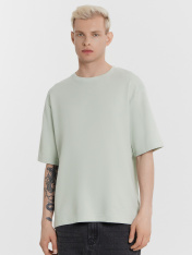 Мужская футболка из трикотажного интерлока – выбор для тех, кто ценит сочетание стиля и комфорта в повседневной одежде. Материал отличается мягкостью и приятной текстурой, обеспечивая комфорт при носке в течение всего дня. Свободный крой и круглый вырез горловины создают расслабленный и современный образ, а слегка спущенная линия плеча добавляет модели непринуждённости. Короткие рукава делают футболку практичной и универсальной, подходящей для разных случаев – от прогулок до отдыха. Этот вариант станет отличным дополнением мужского гардероба благодаря качественным материалам и стильному дизайну. .