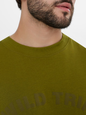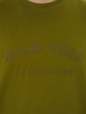 Мужская футболка с надписью "Wild trip to adventure" (перевод: «Дикое путешествие к приключениям») — это стиль и свобода для смелых и активных. Модель прямого свободного кроя выполнена из 100% хлопка, который обеспечивает легкость, воздухообмен и комфорт даже в жаркие дни._x000D_ Слегка спущенные плечи и короткие рукава создают расслабленный силуэт, а надпись с мотивирующим посылом отражает философию свободы, смелости и жажды неизведанного — будь то поход в горы, спонтанная поездка или новые вызовы вповседневной жизни. Эта футболка подойдет для путешествий, прогулок или встреч с друзьями — она не сковывает движений и сохраняет форму после множества стирок.<br>_x000D_ <br>_x000D_ Если вы ищете, где купить мужскую футболку, которая сочетает натуральные материалы, лаконичный дизайн и вдохновляющий принт, эта модель станет отличным выбором._x000D_ _x000D_