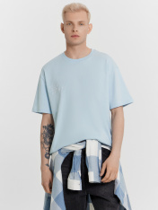 Эта мужская футболка свободного силуэта — идеальный вариант для комфортного и стильного повседневного образа. Свободный крой обеспечивает удобную посадку и свободу движений, делая модель универсальной и актуальной. Круглая горловина придаёт классический акцент, а спущенное плечо и углубленная пройма добавляют расслабленный, современный стиль. Длина рукава чуть выше локтя создает сбалансированный силуэт, идеально подходящий для теплого сезона. Футболка выполнена из хлопковой кулирки — мягкого и дышащего материала, который обеспечивает комфорт в носке и хорошо пропускает воздух, позволяя коже оставаться свежей даже в жаркую погоду. Это практичный и универсальный элемент гардероба, который легко сочетать с джинсами, спортивными шортами или брюками!