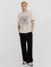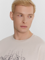 Стильная мужская футболка станет идеальным дополнением к вашему гардеробу для создания расслабленных образов на любой случай. Модель выполнена в прямом свободном крое, что обеспечивает максимальный комфорт и свободу движений. Круглая горловина придает футболке классический вид, который легко сочетается с различными стилями одежды. Короткие рукава и слегка спущенная линия плеча добавляют изделию современный и непринужденный вид. Изготовленная из высококачественной хлопковой кулирки, футболка обладает отличными воздухопроницаемыми и гипоаллергенными свойствами, что делает ее идеальным выбором для любого сезона. Независимо от того, собираетесь ли вы на прогулку, встречу с друзьями или просто на отдых, эта футболка всегда будет выглядеть стильно.