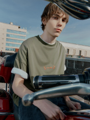 Футболка изготовлена из трикотажного полотна кулирка 100% хб, 240 г/м2. Футболка прямого силуэта. Горловина круглой формы обработана обтачкой из рибаны. Шов втачивания обтачки по спинке закрыт бейкой из основного полотна.Рукава втачные. Линия плеча спущена. Деталь переда состоит из двух ассиметричных деталей. На левой передней детали карман. Нижние срезы футболки и рукавов обработаны швом вподгибку.