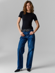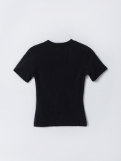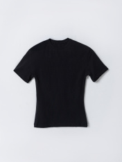 Джемпер прилегающего силуэта. Перед и спинка цельнокроеные. Рукава короткие, втачные. Горловина обработана обтачкой из основного полотна. Низ и рукава вподгибку. _x000D_ Навесной ярлык premium base по заданию._x000D_