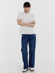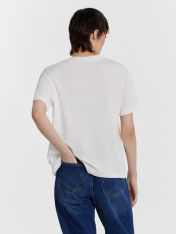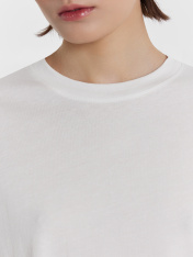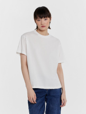 Элегантность в простоте — женская футболка для вашего базового гардероба. Модель свободного силуэта станет основой для множества стильных образов. Она выполнена из мягкой и дышащей хлопковой кулирки, что делает ее идеальным выбором для повседневногоношения. Круглая горловина придает аккуратный вид, а спущенная линия плеча и углубленная пройма обеспечивают свободу движений. Широкие рукава, длиной чуть выше локтя, придают изделию современный и непринужденный вид. Эта футболка идеально сочетаетсяс джинсами, шортами или юбкой, позволяя вам создавать как повседневные, так и более элегантные образы. Стильная удобная и универсальная — незаменимый элемент вашего гардероба!