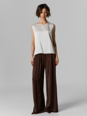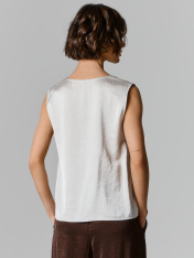 Блуза А-силуэта, свободная, без рукавов. Спинка и перед цельнокроеные. Горловина круглой формы. Проймы, горловина и низ обработаны бейками из основного полотна. _x000D_ _x000D_ _x000D_ _x000D_ _x000D_ _x000D_ _x000D_ _x000D_
